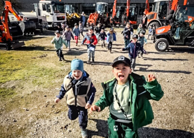 Kurzerhand wurde auf unserem Hof ein kleiner Baumaschinen-Erlebnisparcours aufgebaut. Die Idee: Die Kinder sollten Baumaschinen nicht nur sehen, sondern selbst ausprobieren und erleben.